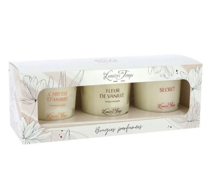 Découvrez nos coffrets "Les Traditionnels" composés de 3 Bougies Parfumées de 90 g chacune. Ces coffrets forment une alliance parfaite entre les différentes fragrances de notre célèbre collection Les Traditionnels.